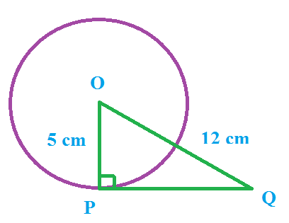 A tangent PQ at a point P of a circle of radius 5 cm meets a line through the centre O at a point Q so that OQ =12 cm, Length PQ is: