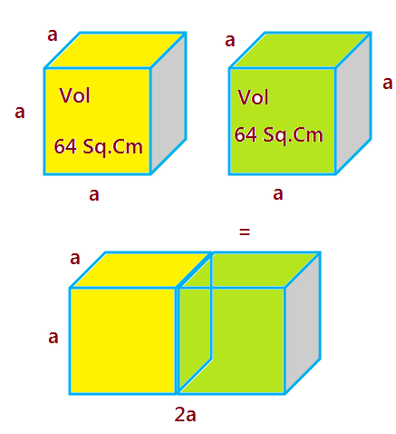 Now these two cubes when joined, it can be observed that, their lengths are added and breadth and height remains the same.