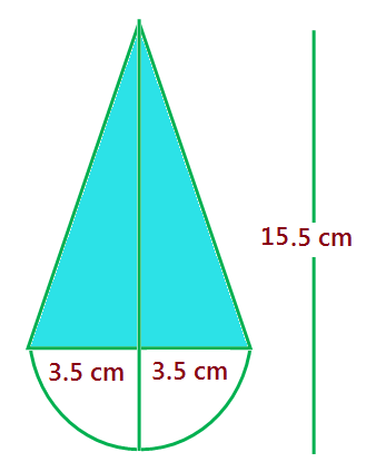 A toy is in the form of a cone of radius 3.5 cm mounted on a hemisphere of same radius. The total height of the toy is 15.5 cm. Find the total surface area of the toy.