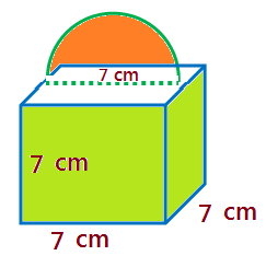 A cubical block of side 7 cm is surmounted by a hemisphere. What is the greatest diameter the hemisphere can have? Find the surface area of the solid.