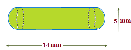 A medicine capsule is in the shape of a cylinder with two hemispheres stuck to each of its ends (see Fig). The length of the entire capsule is 14 ‘ mm and the diameter of the capsule is 5 mm. Find its surface area.