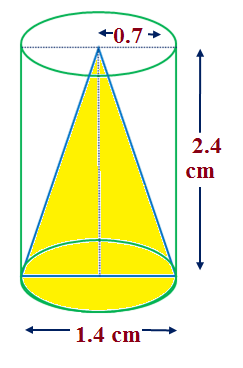 ∴ The radius (r) of the cylinder and the cone is half the diameter: 1.4 cm/2 = 0.7 cm.