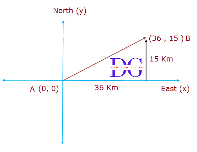 Let us take town A at origin point (0,0)Hence, town B will be at point (36,15) with respect to town A And, as calculated above, the distance between town A and B will be 39 km .