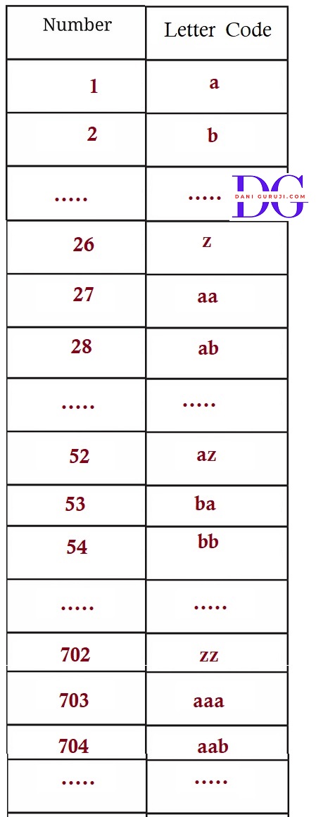 To represent numbers beyond 26, use combinations of letters similar to how letters form words. For example: