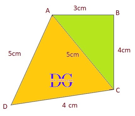 Find the area of a quadrilateral ABCD in which AB = 3 cm, BC = 4 cm, CD = 4 cm, DA = 5 cm and AC = 5 cm.