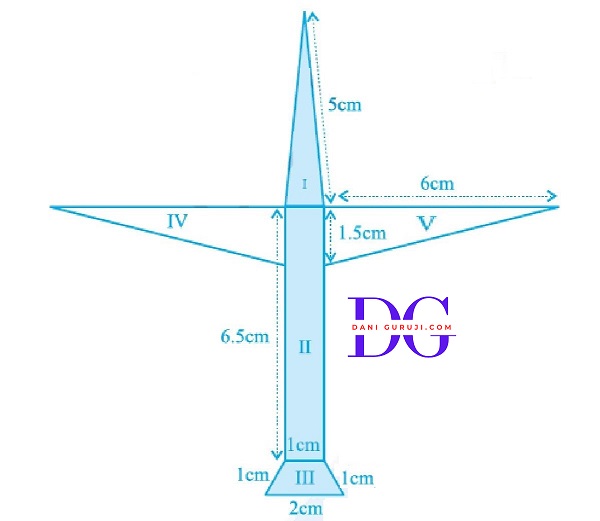Radha made a picture of an aero plane with colored paper as shown in Fig 12.15. Find the total area of the paper used.