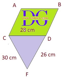 Semi perimeter of the Triangle ADC (s) = $$ { { a + b + c } \over 2} $$