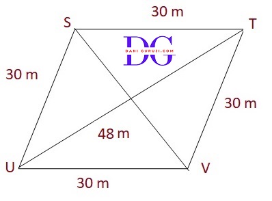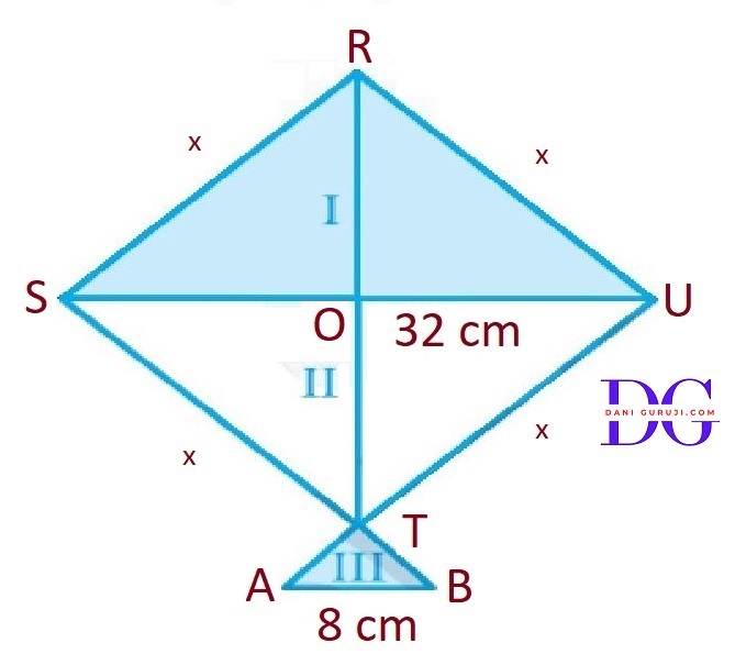 Given: Let kite RSTU is a square of side x cm and diagonals RT = SU = 32 cm
