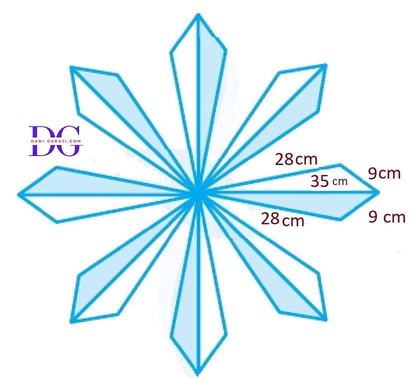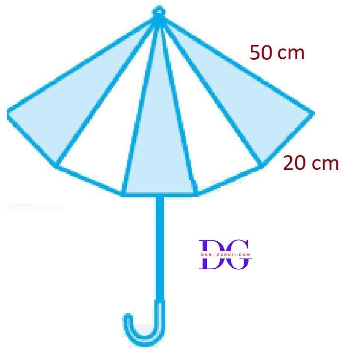 Given: Umbrella is made up of 10 triangular pieces of sides 50, 50 and 20 cm