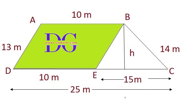 Given: field is in the form of a trapezium ABCD such that parallel side are AB = 25m and CD = 10m .