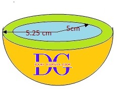 A hemispherical bowl is made of steel, 0.25 cm thick. The inner radius of the bowl is 5cm. Find the outer curved surface of the bowl. (Assume π =22/7)