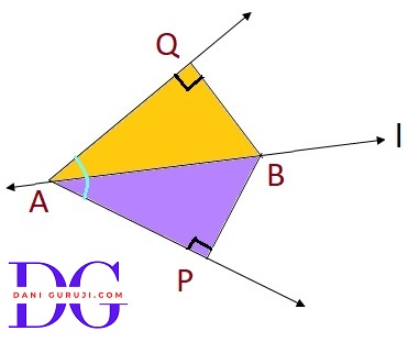 It is given that the line “l” is the bisector of angle $\angle $A and the line segments BP and BQ are perpendiculars drawn from l.